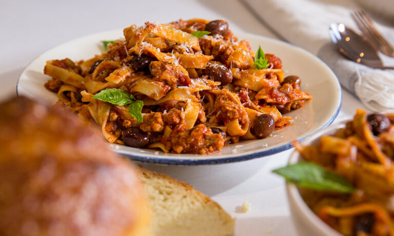 The best way to motivate yourself to cook is to keep the ingredients you need on hand. Now, this doesn’t mean stocking your pantry and fridge with every Italian ingredient you can think of. Start with a few simple ingredients like staple pasta shapes for the pantry, a good quality Parmigiano Reggiano for the fridge, and your favourite prepared pasta sauces. The reason we recommend starting with prepared sauces is that it allows you to focus on perfecting skills like cooking pasta to al dente. Just make sure you opt for authentic-tasting sauces, like our Nonna Pia’s Siciliana, Puttanesca, and Arrabiata.